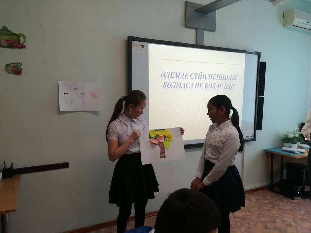 Ашық сабақтың мақсаты оқушыларға сүйіспеншілік ұғымын кеңейте түсіндіре отырып, өз ойларын ашық айтуға, топпен жұмыс жасауға үйрету болды. Сабақ жаңартылған бағдарлама негізінде өтті.