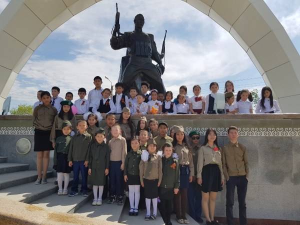 Сонымен қатар балалармен бірге Жеңіс саябағына барып «Мәңгілік алау» басына гүл шоқтары қойылды.