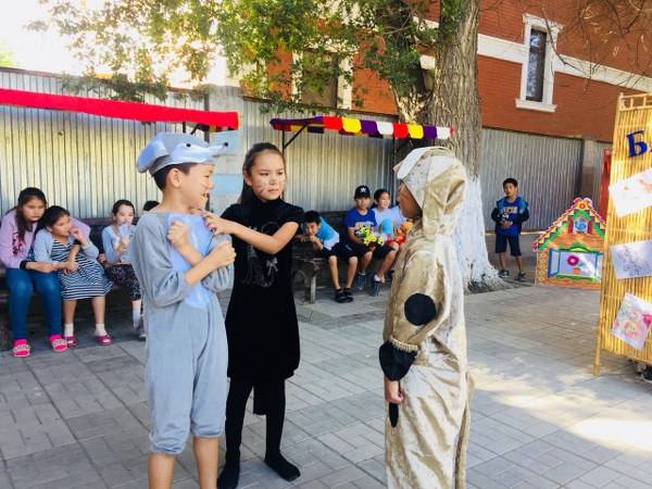 - Балалардың ой-өрісін дамыту, мәдени өмірге баули отырып рухани өсулеріне ықпал ету. Осы мақсатта «Балдәурен» қуыршақ театры, тәрбиешілер және музықа жетекшілерінің ұйымдастыруларымен аптасына бір рет саусақ қуыршақтары арқылы «Қоянның үйшігі», «Ит пен мысық және тышқанның достығы» ертегілер қойылымдары көрсетілді. Әр қойылымды сағынып, қызыға тамашалаған бүлдіршіндер шымылдық артындағы қуыршақтардың қимылына мәз-мәйрәм болып, қол соғып, қошеметтеп отырады. Ертегілер бүлдіршіндерге ұғыныңқы, әсерлі болып, жүректерге жетуі үшін музыка әуенімен көркемделді.